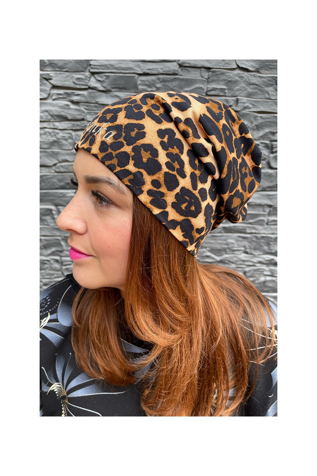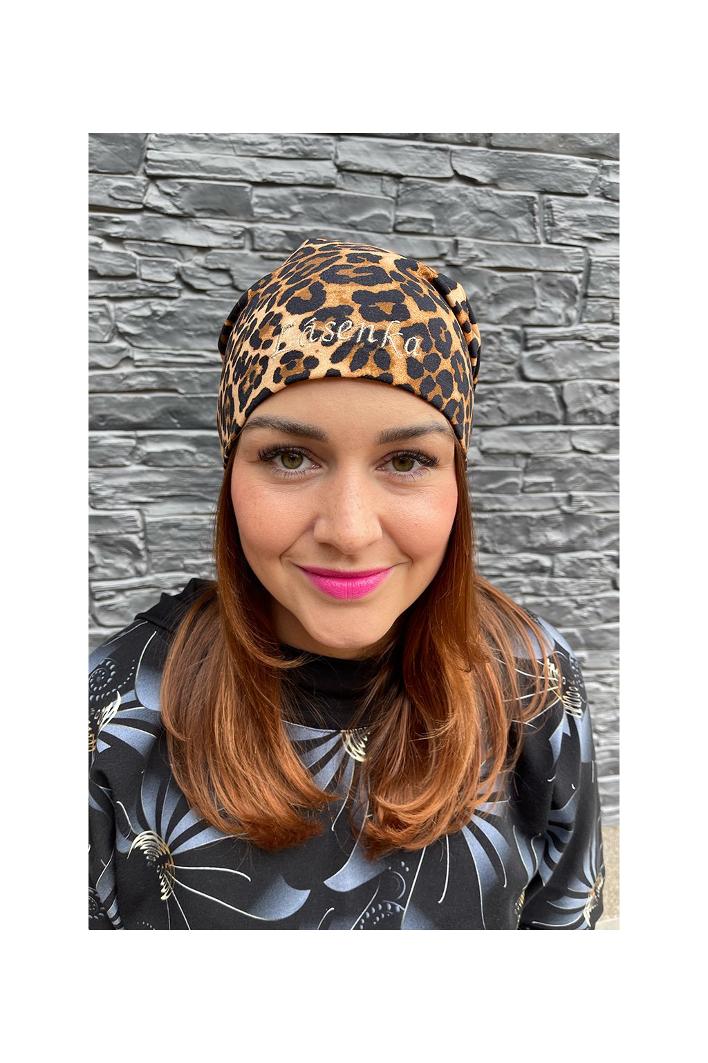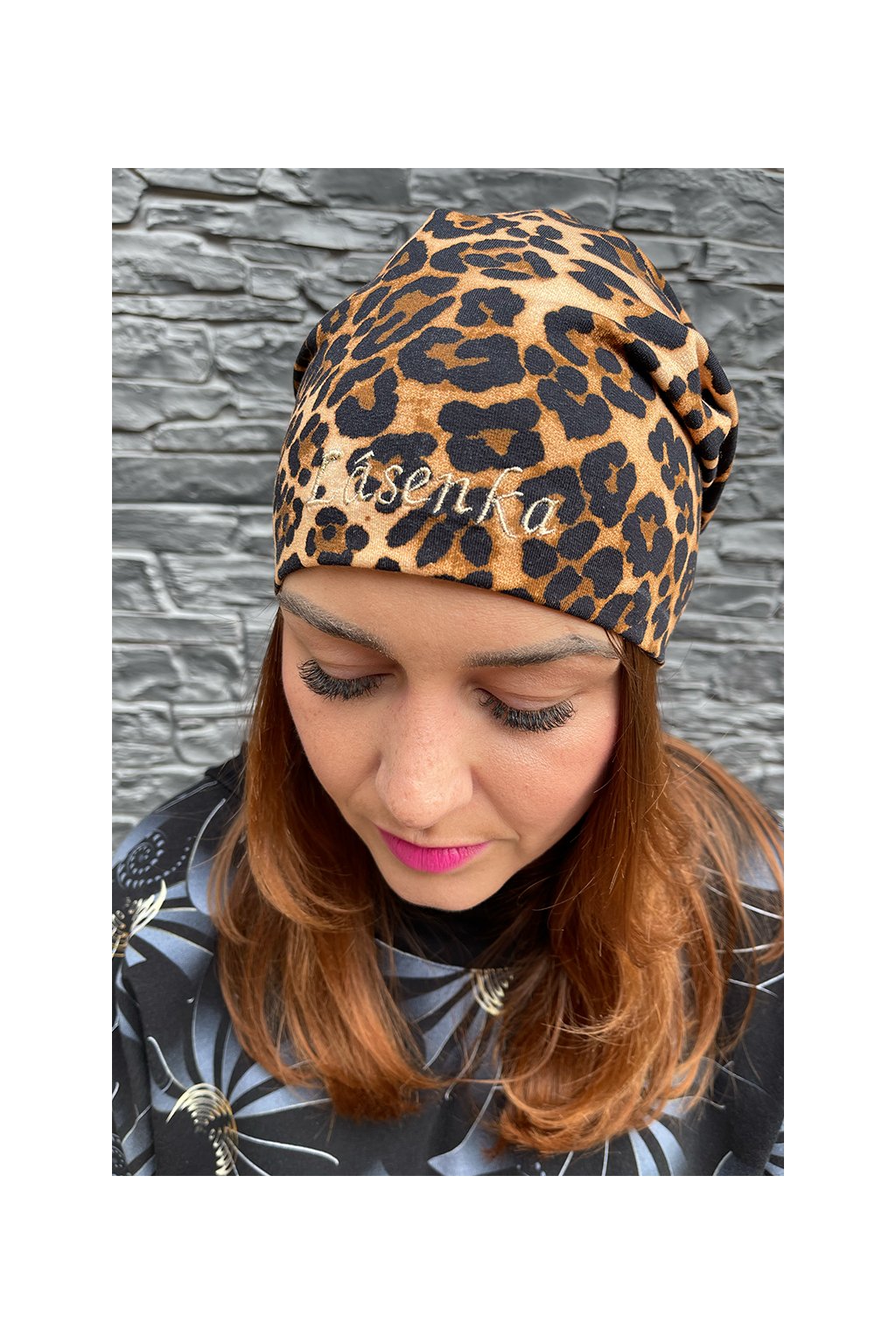 Bavlněná čepice s výšivkou LA:SENKA LEOPARD
