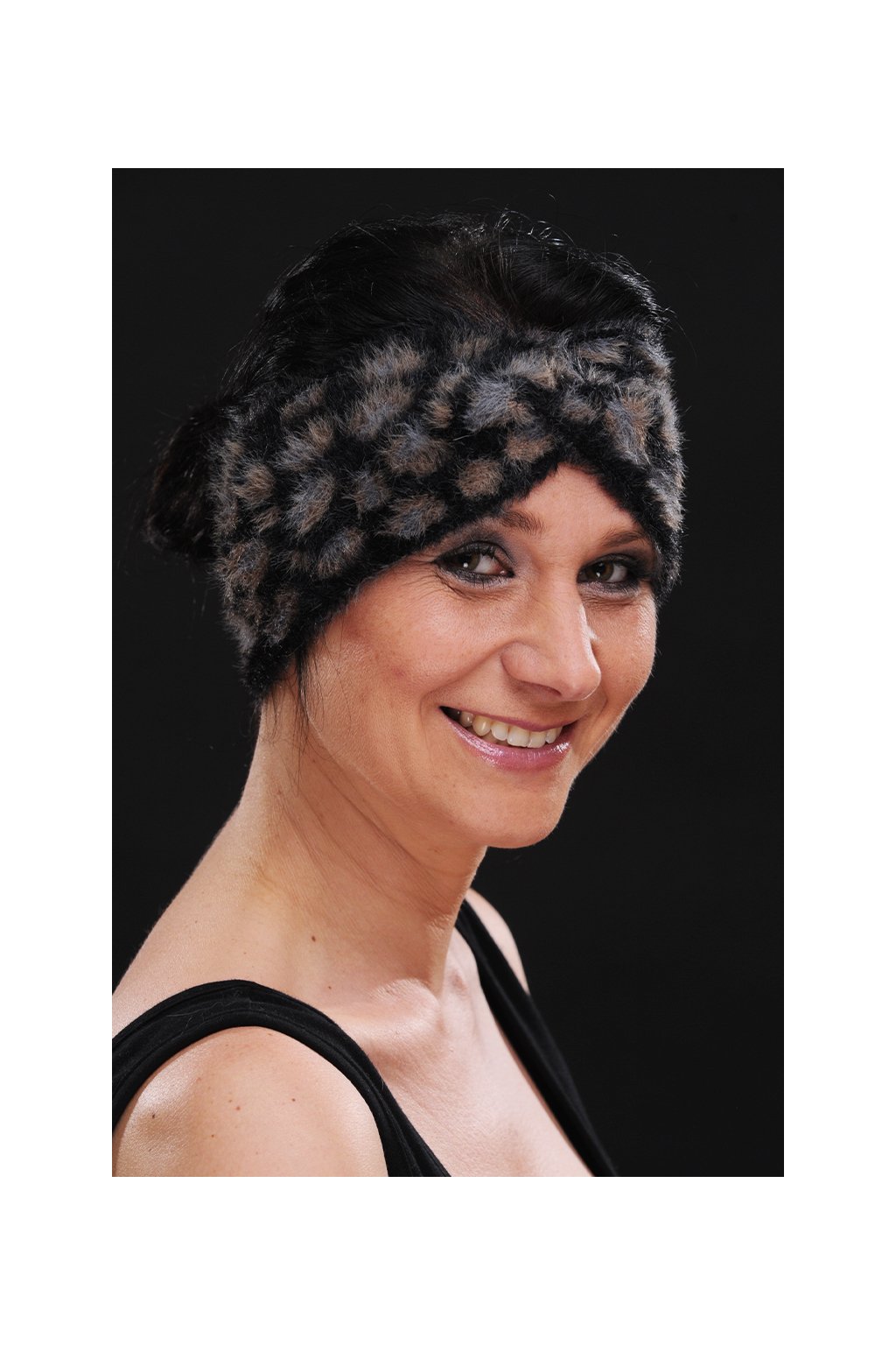 Dámská zimní čelenka na čelo a uši s tygrovaným vzorem.
