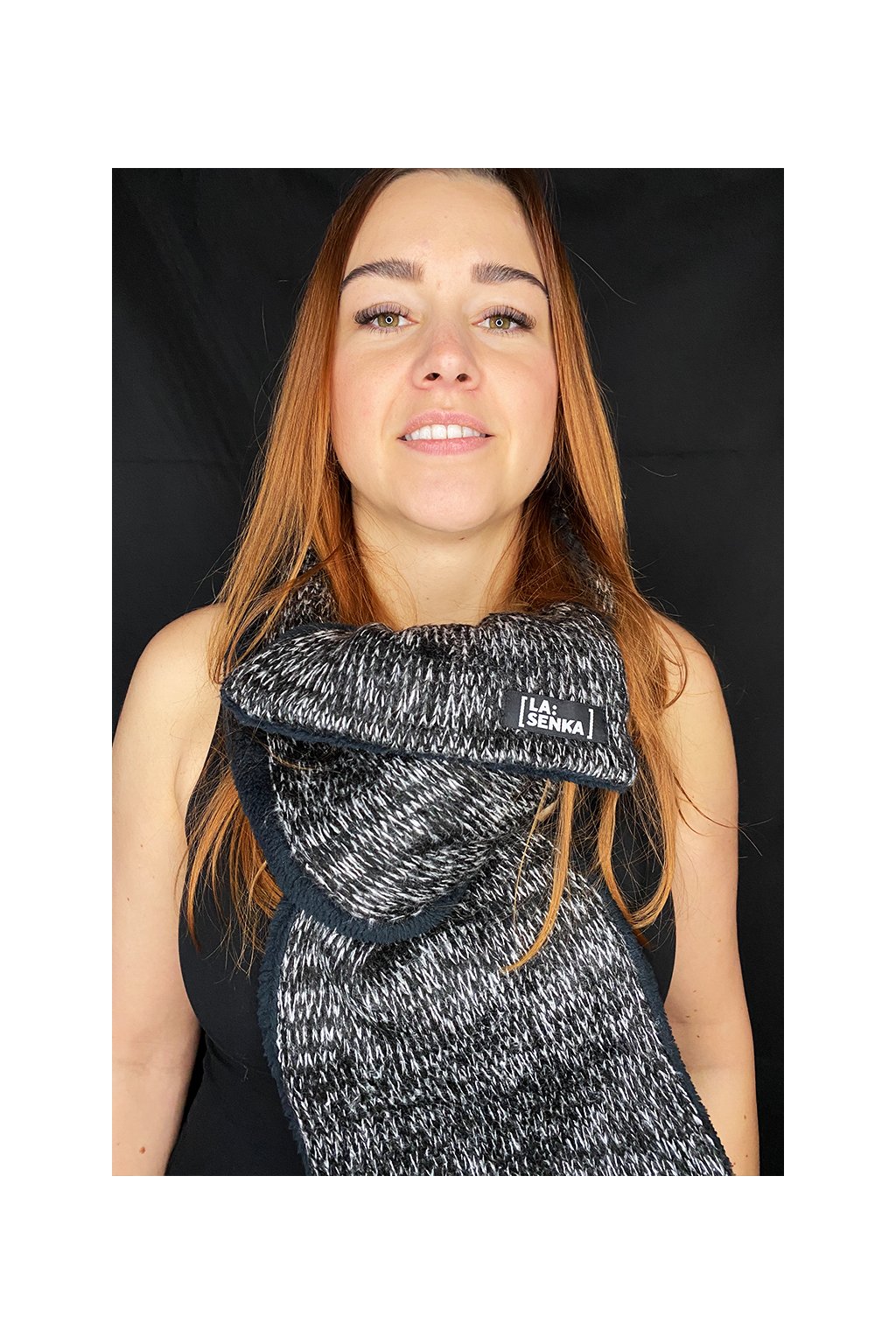 Zimní fleecová pletená šála LA:SENKA BLACK MELANGE