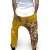 Originální půlený design UNISEX kalhot s širokým sedem (tzv. "nasrávačky") jsou skvělým doplňkem pro jakékoli využití. Variace použitých látek kromě pohodlného nošení zajistí i netradiční obdivy a vzbudí zájem okolí. Střih opticky zeštíhluje postavu. Kalhoty mají klasický dlouhý střih bez zakončení nohavic. Na kalhotách naleznete dvě přední a dvě zadní kapsy a také širokou gumu v pase. Třešničkou na dortu je decentní brandová nášivka umístěná u kotníku a malý kovový odznáček s motivem lví hlavy.