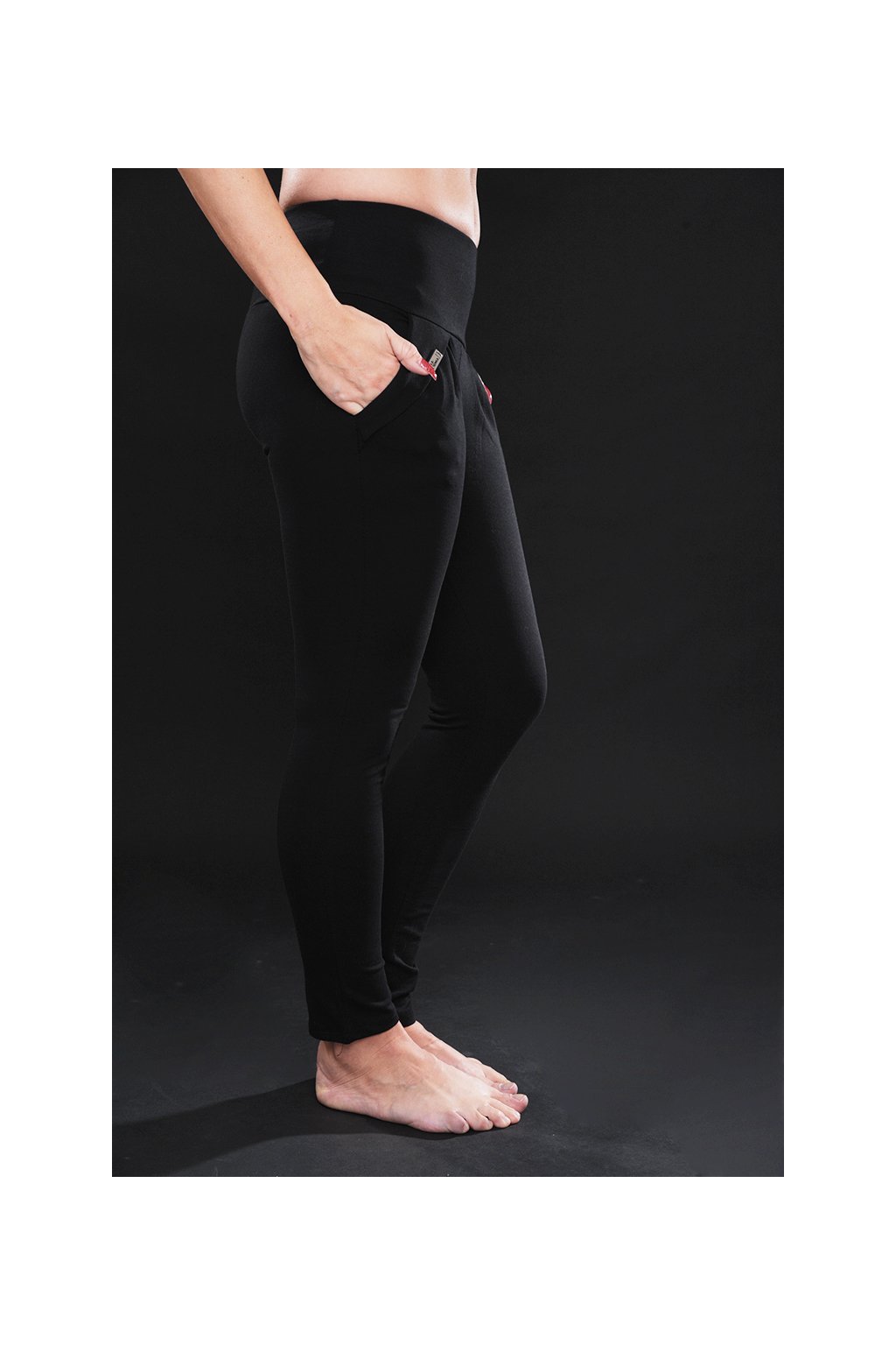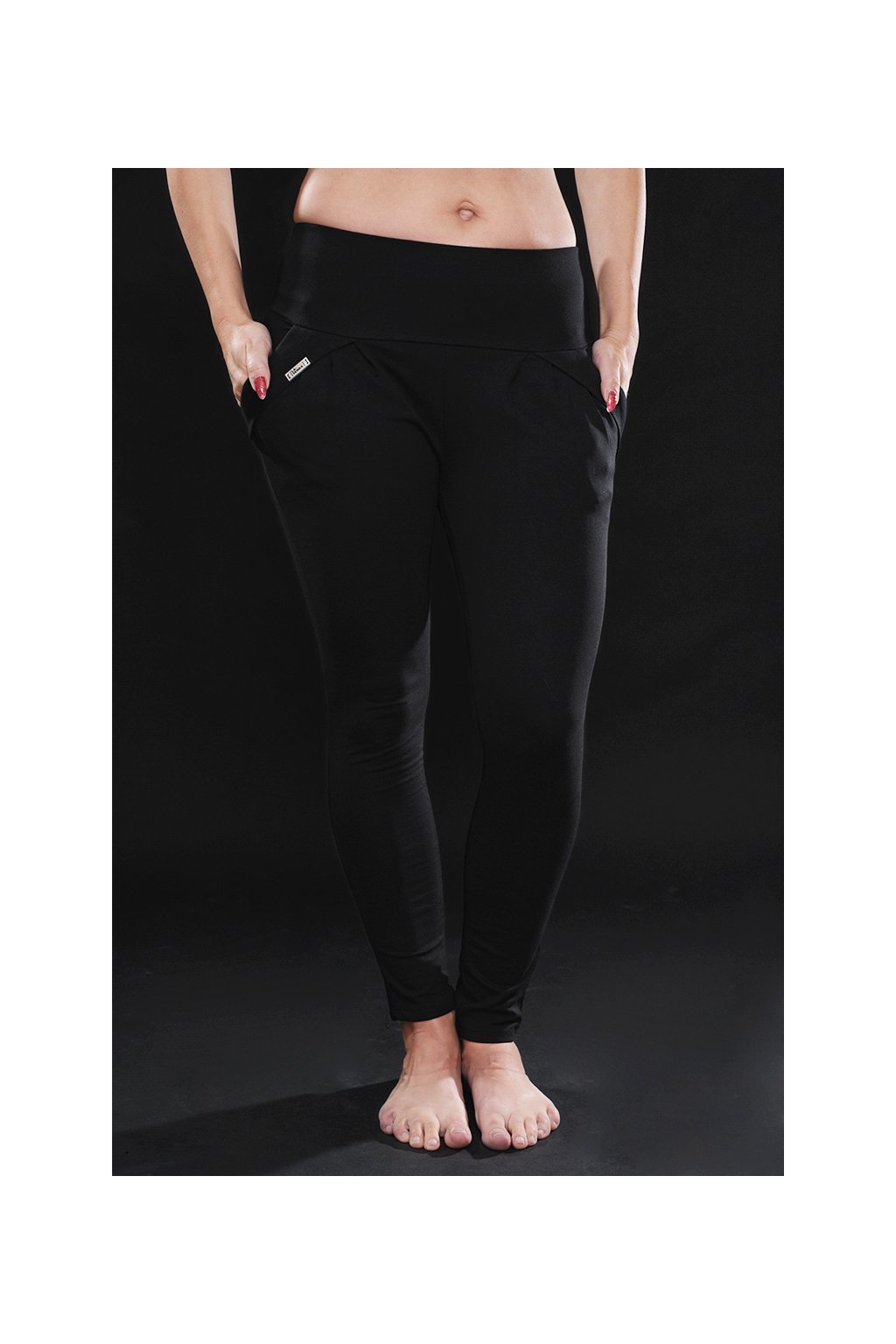 Vysoce pohodlné dámské legíny vyrobené z kvalitní látky vhodné nejen pro sportovní aktivity. Pro komfortní nošení je v pase široká guma. Nohavice kalhot jsou volné, bez možnosti stažení v oblasti kotníků.
